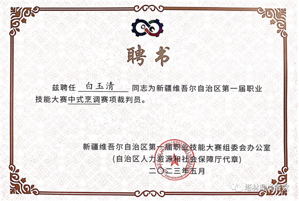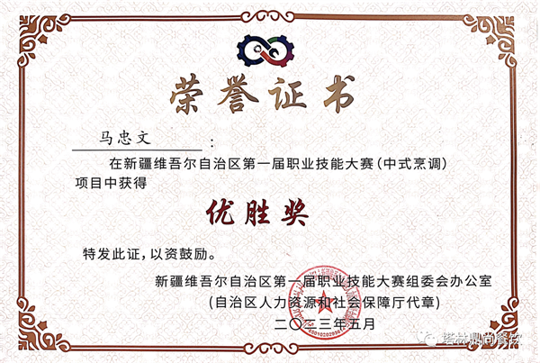 2023年5月24日自治區(qū)第一屆職業(yè)技能大賽閉幕式圓滿落幕,在剛剛結(jié)束的大賽中,新疆塔林鼎尚餐飲管理(集團(tuán))有限公司馬忠文在“中式烹調(diào)”項目比賽中,以扎實的烹飪基礎(chǔ)、過硬的烹飪技能,戰(zhàn)勝眾多選手,斬獲“中式烹調(diào)”項目優(yōu)勝獎。喜訊傳來,公司上下與有榮焉,備感驕傲。